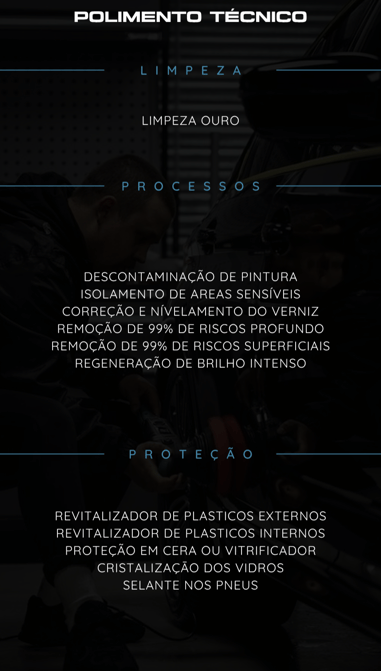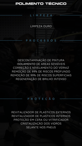Todos os serviços são realizados em iluminação adequada e ambiente controlado garantindo a aplicação perfeita de filmes, revestimentos e polimentos, sem interferências externas.